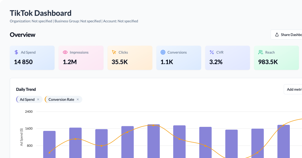 See your performance across TikTok, Criteo, Amazon, and Walmart, all in the same place.